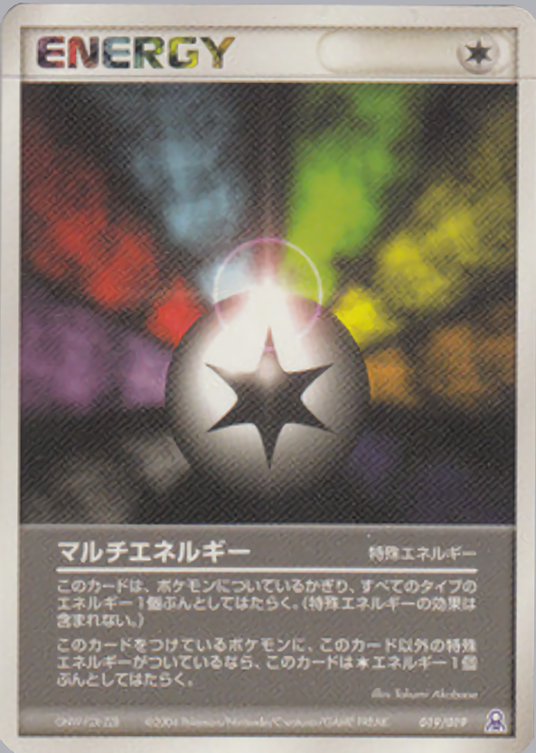 このカードは、ポケモンについているかぎり、すべてのタイプのエネルギー1個ぶんとしてはたらく。(特殊エネルギーの効果は、含まれない。)