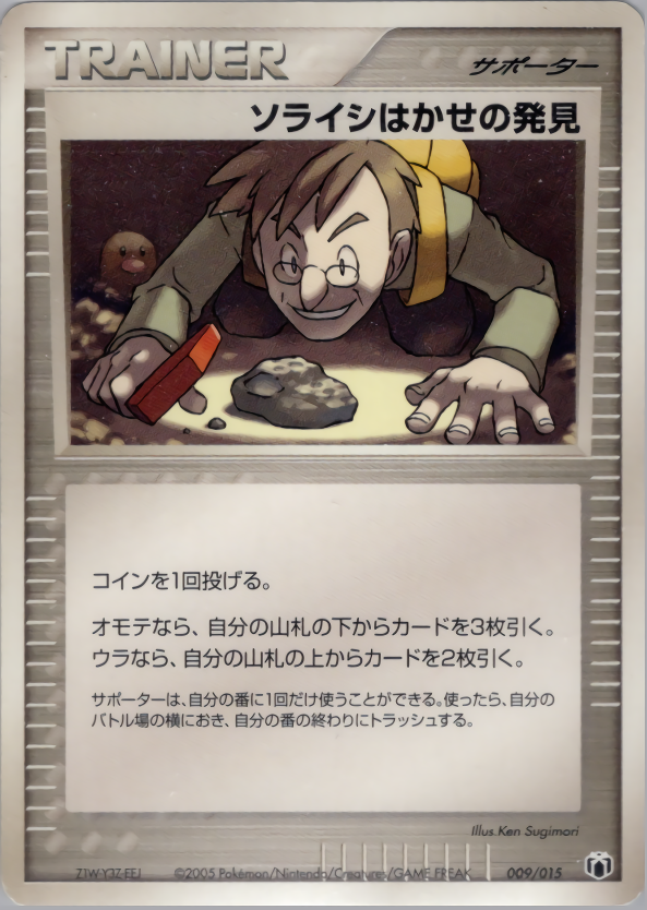 コインを1回投げる。オモテなら、自分の山札の下からカードを3枚引く。ウラなら、自分の山札の上からカードを2枚引く。