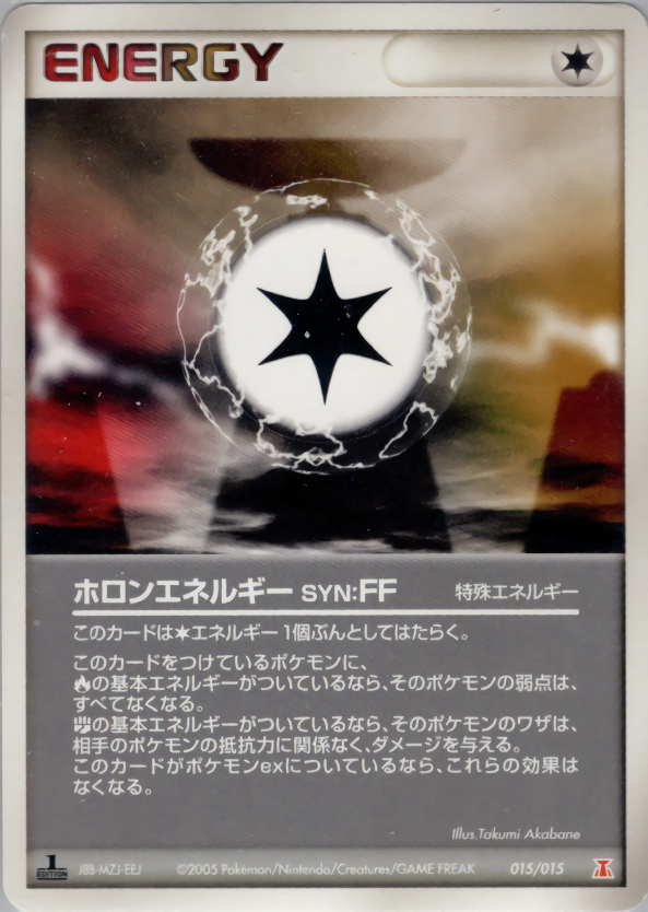 このカードは無エネルギー1個ぶんとしてはたらく。このカードをつけているポケモンに、炎の基本エネルギーがついているなら、そのポケモンの弱点は、すべてなくなる。闘の基本エネルギーがついているなら、そのポケモンのワザは、相手のポケモンの抵抗力に関係なく、ダメージを与える。このカードがポケモンexについているなら、これらの効果はなくなる。