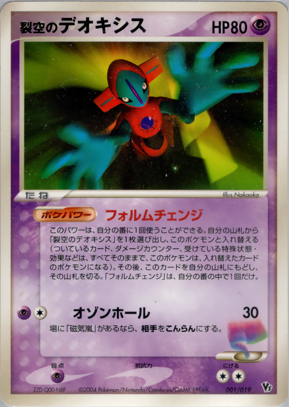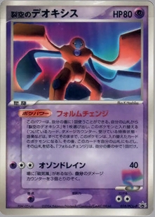 このパワーは、自分の番に1回使うことができる。自分の山札から「裂空のデオキシス」を1枚選び出し、このポケモンと入れ替える(ついているカード、ダメージカウンター、受けている特殊状態・効果などは、すべてそのままで、このポケモンは、入れ替えたカードのポケモンになる)。その後、このカードを自分の山札にもどし、その山札を切る。「フォルムチェンジ」は、自分の番の中で1回だけ。