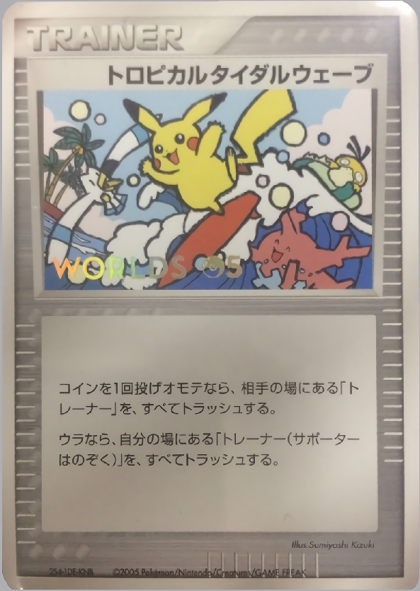 コインを1回投げオモテなら、相手の場にある「トレーナー」を、すべてトラッシュする。ウラなら、自分の場にある「トレーナー(サポーターはのぞく)」を、すべてトラッシュする。