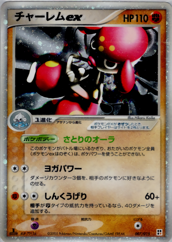 このポケモンがバトル場にいるかぎり、おたがいのポケモン全員(ポケモンexはのぞく)は、ポケパワーを使うことができない。