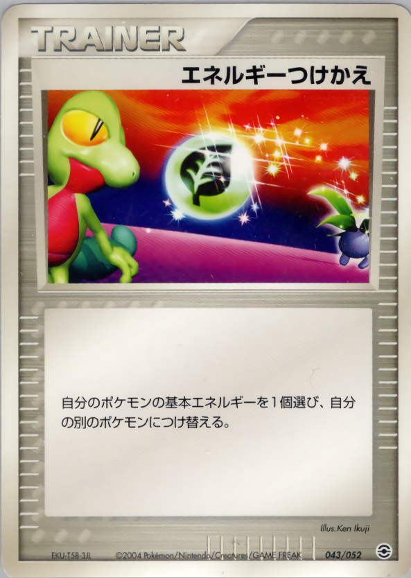 自分のポケモンの基本エネルギーを1個選び、自分の別のポケモンにつけ替える。
