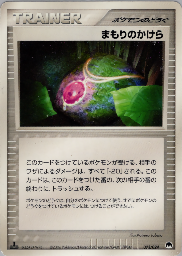 このカードをつけているポケモンが受ける、相手のワザによるダメージは、すべて「-20」される。このカードは、このカードをつけた番の、次の相手の番の終わりに、トラッシュする。
