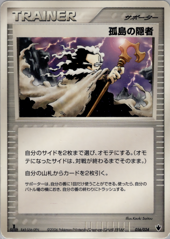 自分のサイドを2枚まで選び、オモテにする。(オモテになったサイドは、対戦が終わるまでそのまま。)自分の山札からカードを2枚引く。