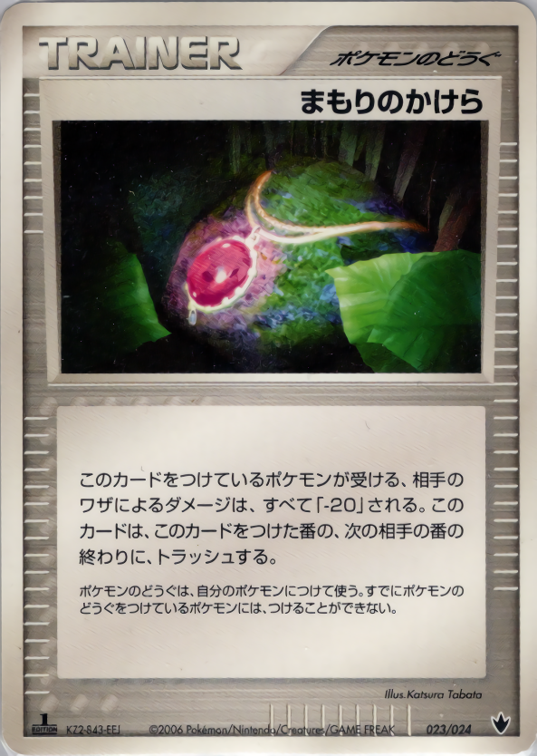このカードをつけているポケモンが受ける、相手のワザによるダメージは、すべて「-20」される。このカードは、このカードをつけた番の、次の相手の番の終わりに、トラッシュする。