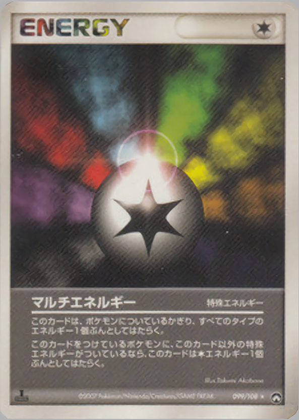 このカードは、ポケモンについているかぎり、すべてのタイプのエネルギー1個ぶんとしてはたらく。