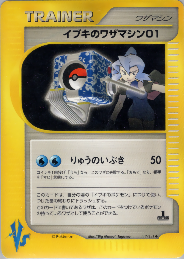 このカードは、自分の場の「イブキのポケモン」につけて使い、つけた番の終わりにトラッシュする。このカードに書いてあるワザは、このカードをつけているポケモンの持っているワザとして使うことができる。